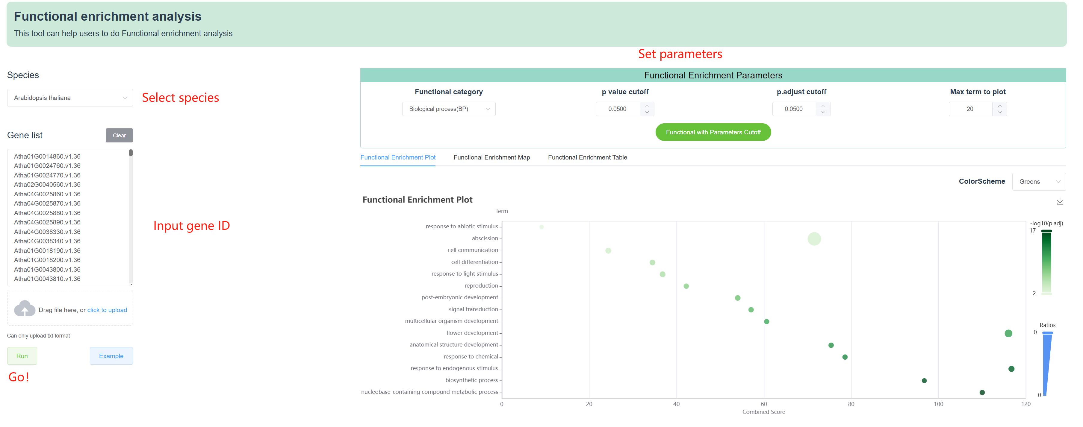 The Functional enrichment tool in PGdatabase helps users identify biological processes, molecular functions, and cellular components that are statistically overrepresented among a list of differentially expressed genes. This can provide insights into the biological significance of the gene set. Users can upload the PGdatabase ID in the correct format and the program will perform the Functional enrichment.