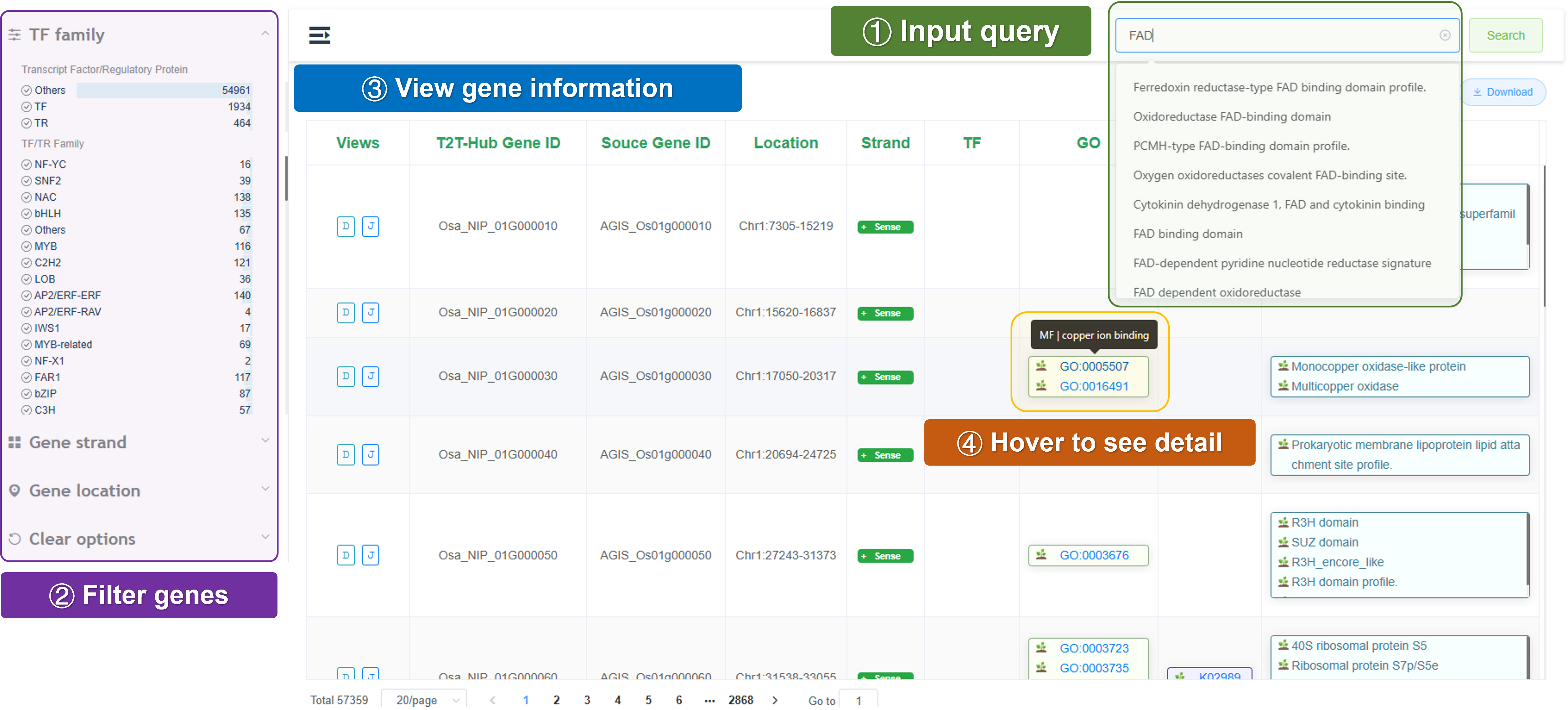 Search: Search for a specific gene by gene ID, gene name, or gene description.