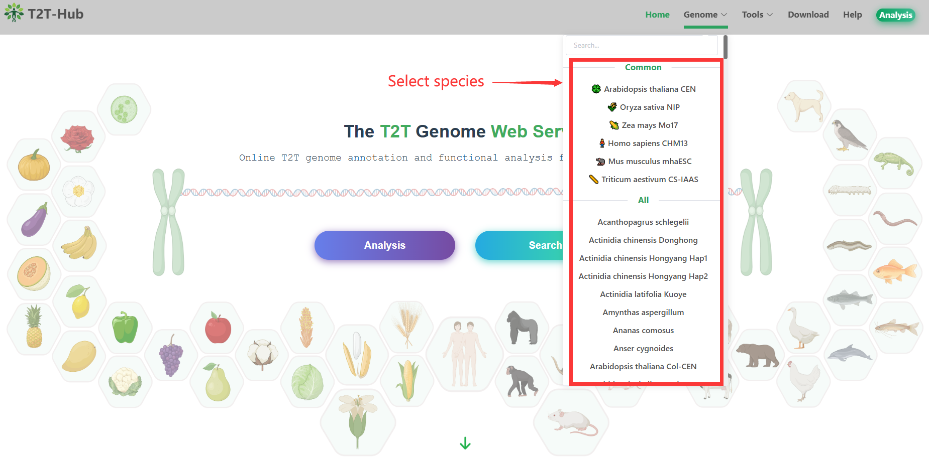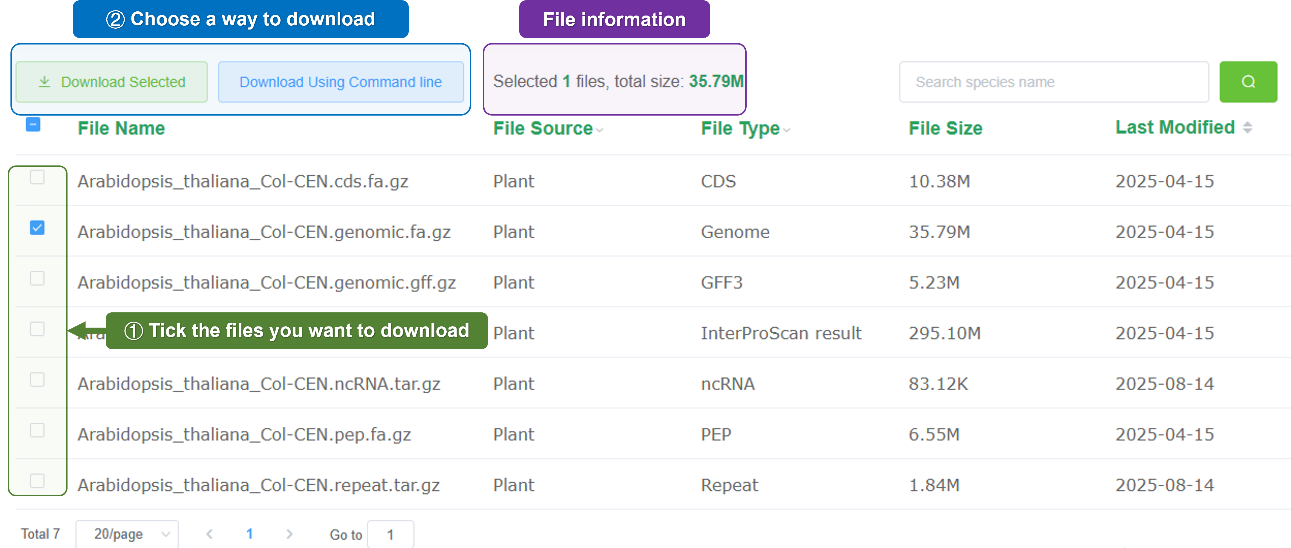 Here, you can view the genome information of the species you are interested in.
