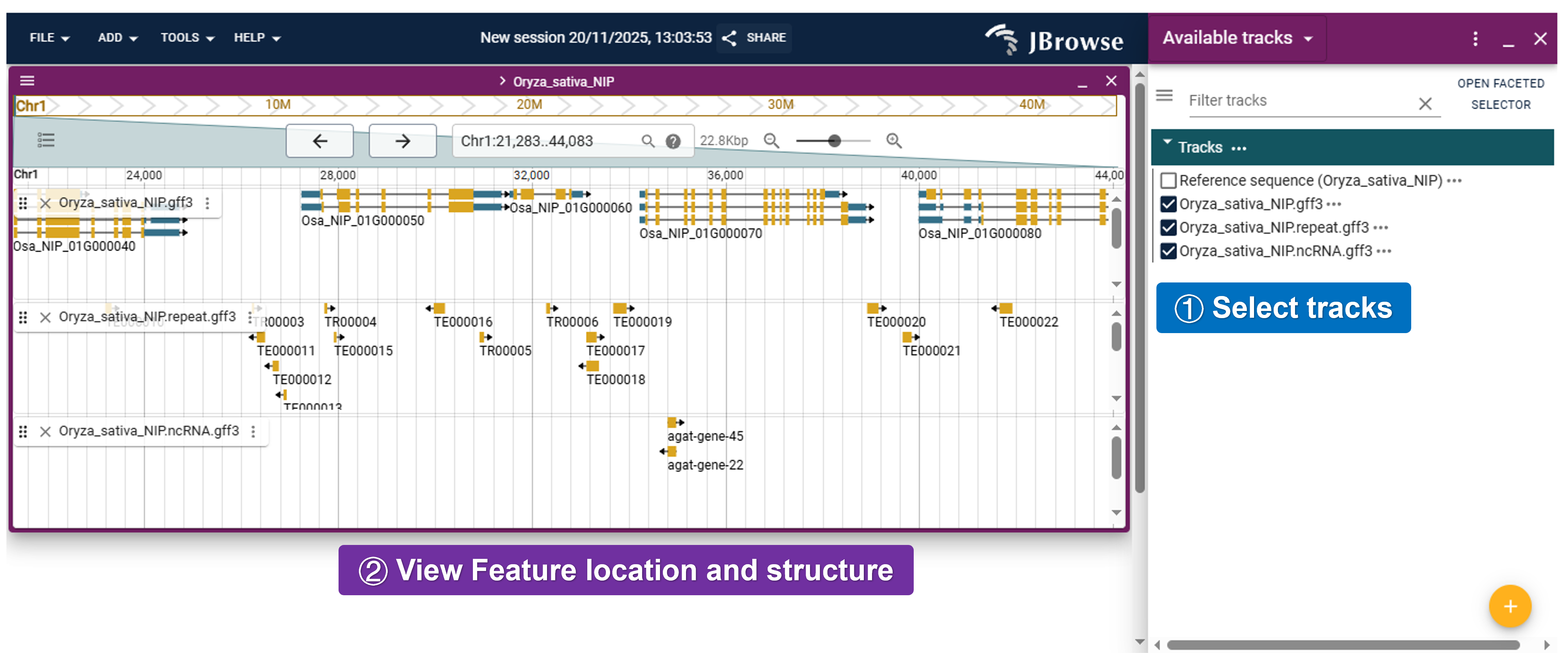 - JBrowser2: Visualize genomic data and explore the genome structure and features.
