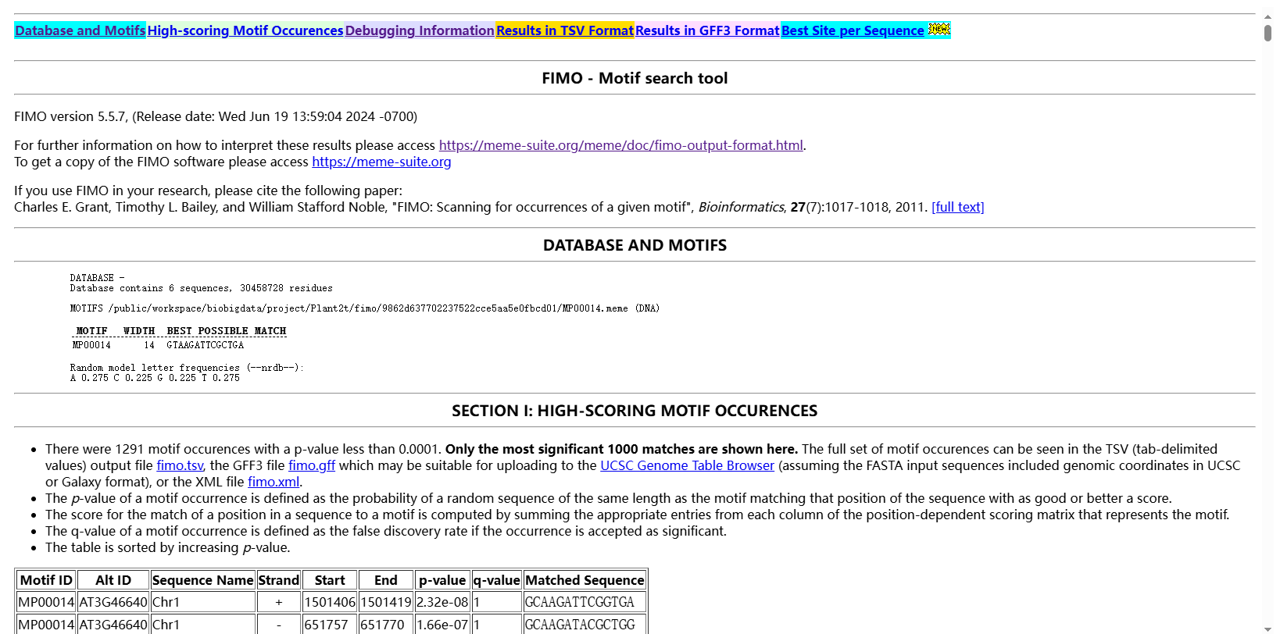 Here, we display the results directly on the website after the analysis is completed. Click here to interpret these results.